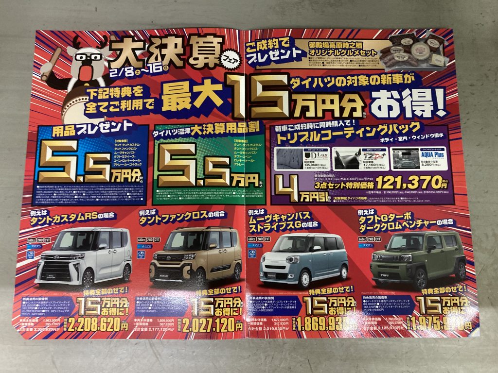 さて、ダイハツより『大決算フェア』のお知らせです❕