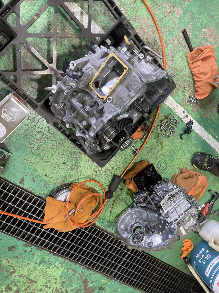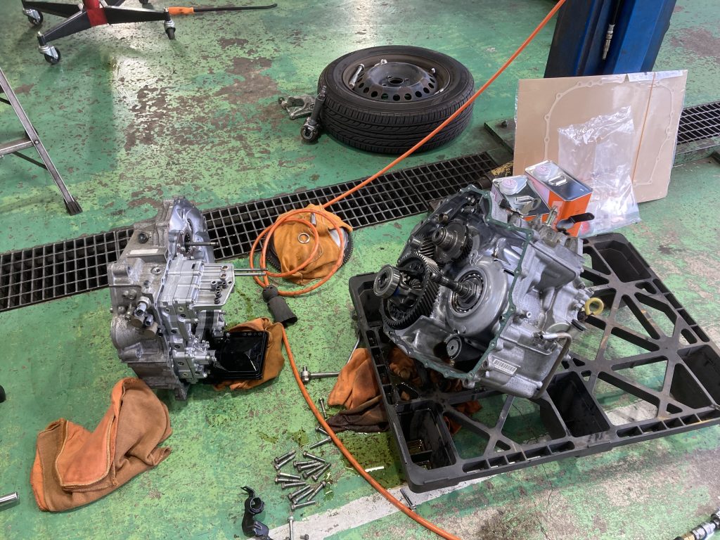 お客様からの依頼で、乗用車のトランスミッションオイル漏れの修理を実施しました。