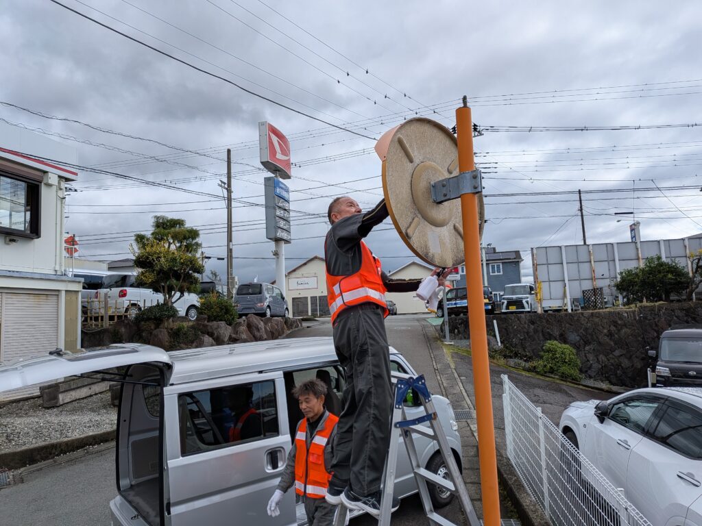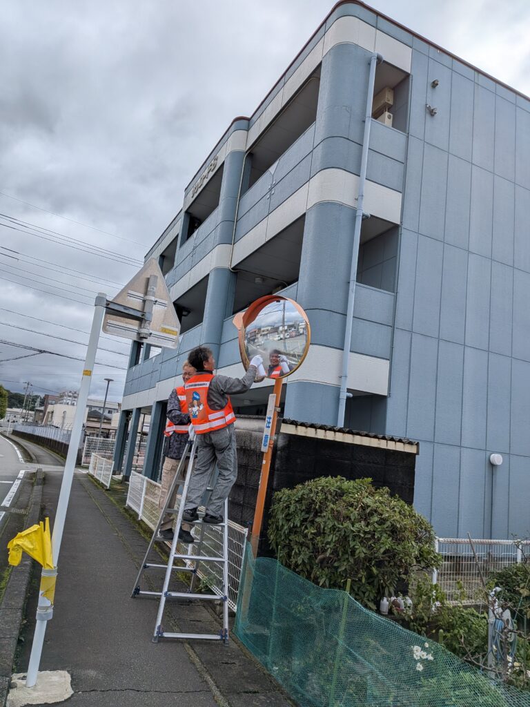 会員である当社も社長が参加し、市内約300か所のカーブミラーを清掃しました。